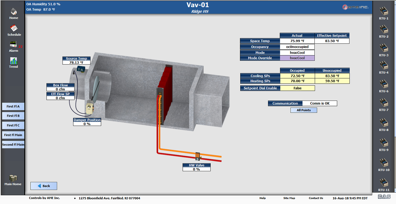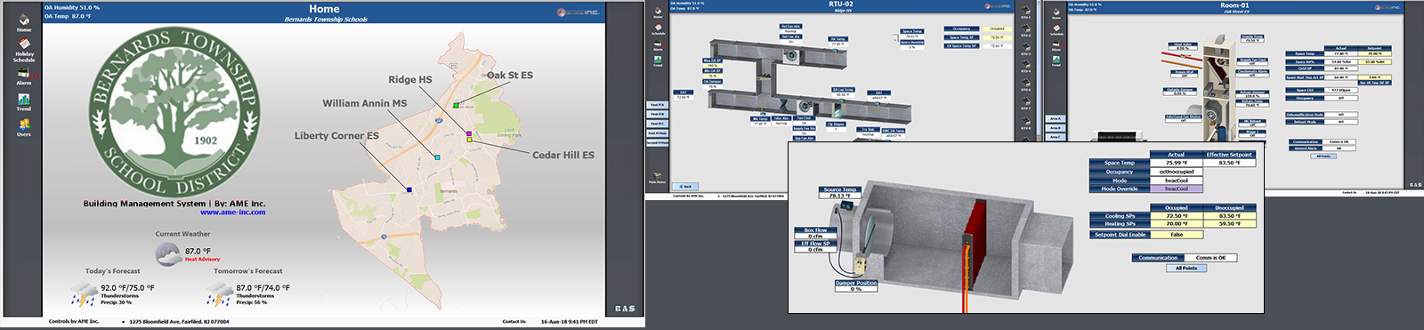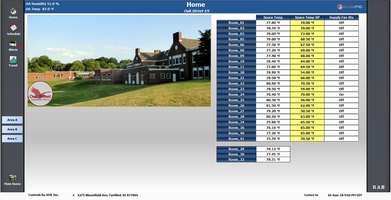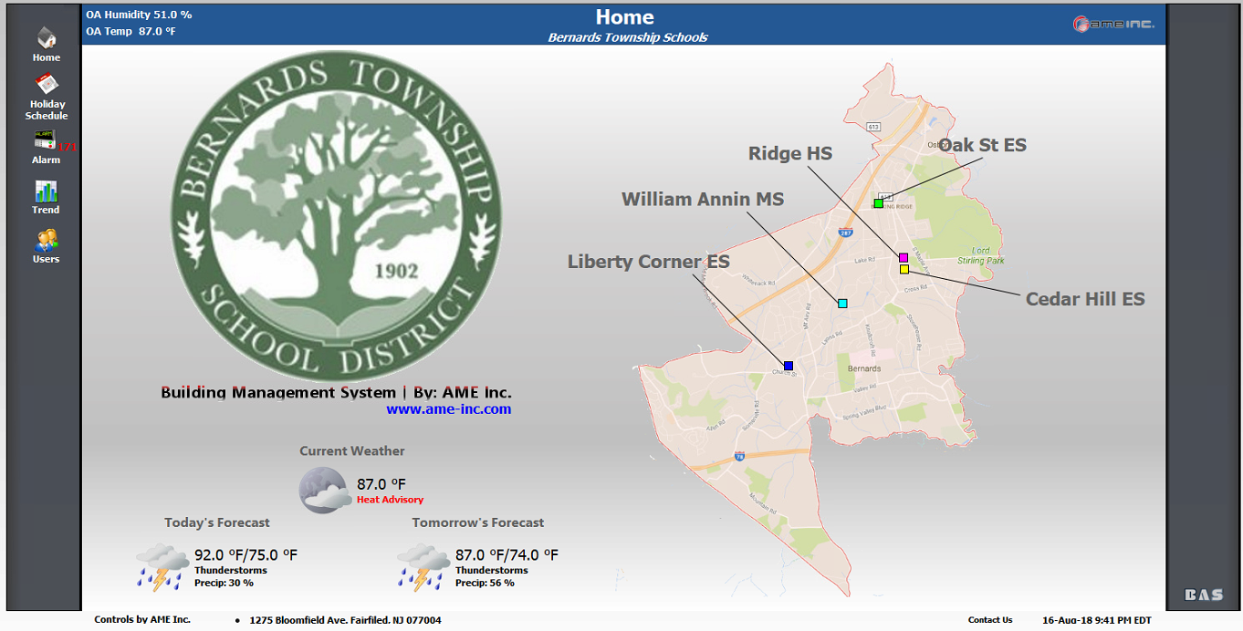The Bernard Township School District had us come out for a new installation covering the whole district. All the controls were done by AME. We used Honeywell N4 technology and WEBS 8000 to not only streamline management of the buildings, but to simplify access through wi-fi capabilities as well.