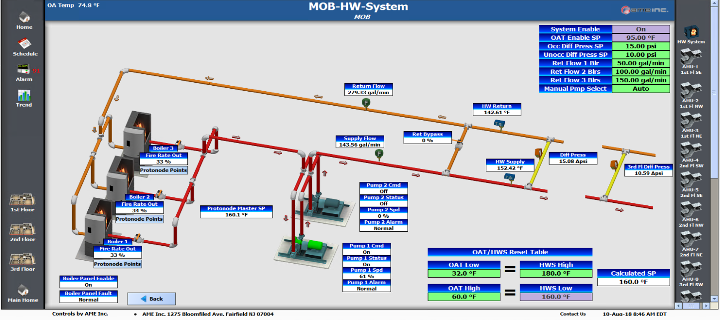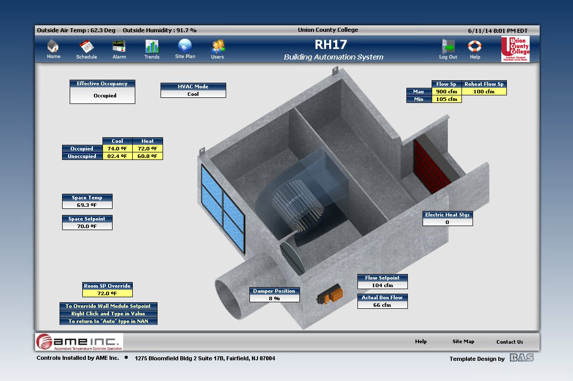 AME Inc. offer rich graphical presentation on top of their excellent controls systems to allow easy navigation through your system. Our graphics packages make it easy to access your controls, view trends, view alarms, and manage users.